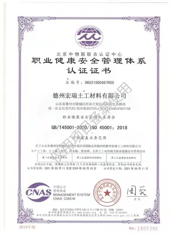 職業健康安全管理體系認證證書